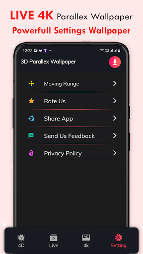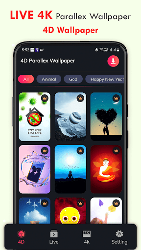 Best & Top 3D/4D Live Wallpapers categories Animals 4D wallpapers, Nature 4D backgrounds , X-Mas, Dewali, Eid, halloween, moutains,abstract,dark, galaxies and many more.