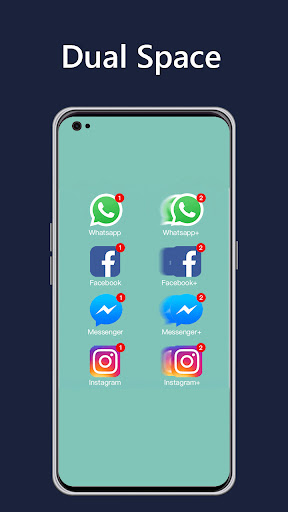 Dual Space - Multiple App can easily use one phone to log in multiple accounts and keep them all online at the same time! And you don’t need to worry about the message reception and data storage problem of different accounts, because they will work independently and with no interference to each other.