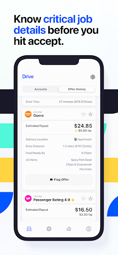 - Unlock hidden trip info – pickup and drop-off address, mileage, delivery location, dollar per mile, items list, restaurant wait times & more
