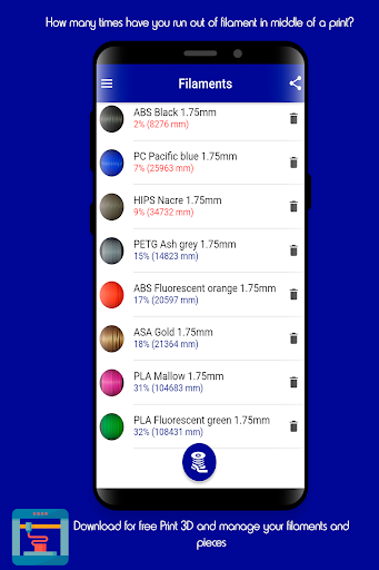 Manage the maintenance of your printers, buy filaments when you have less than 15% through www.3dfilamento.es