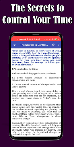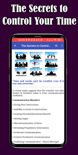 It is a real-time management planner that teaches you how to manage your time and how to work properly. It also teaches you how to start a small business and manage your worker. This Secrets to Control Your Time app will teach you where to use your time and how to reach your ultimate goal and how to become a successful man.
