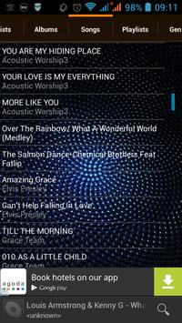Play MP3 songs from your phone. This music player is not only based on artists or albums, but also based on the folder structure.