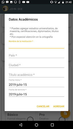 Создайте свою учебную программу Vitae быстро и простым способом, заполните необходимую информацию, выберите один из удивительных шаблонов, и в одно мгновение у вас будет PDF с вашей учебной программой (CV).С минималистским и дружелюбным интерфейсом «создает ваше резюме», помогает вам создать профессиональную учебную программу в моменты, которая помогает вам при получении работы.Приложение легко использовать и будет постоянно добавлять шаблоны.Ваша учебная программа - это письмо о презентации.