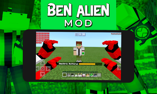 Alien Ben Mod! The Earth's Defender! This add-on is currently available in Minecraft. Between his cousin Gwen Tennyson and his grandfather Maxwell Tennyson, Benjamin Tennyson is the boy who is destined to have the Ben 10 Omnitrix. Ben may now morph into an alien to fight monsters and villains thanks to the omnitrix bn10. But without Gwen's magic and Grandpa Max's battle and weapon expertise, Ben will be unable to restore the Minecraft world. Ben's foes possess remarkable abilities similar to those possessed by Ben and his comrades, but our hero Ben will not allow them to prevail and rule the Minecraft world. So, what are you waiting for? Find out how Ben and his friends use their abilities and skills to beat the Minecraft world's most fearsome foes.