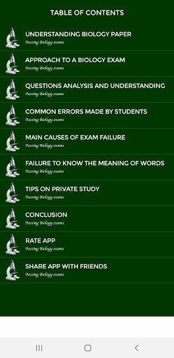 KCSE Biology booster and Exam tips is one of the best apps that help students improve their perfomance in Biology subject. It contains all the rules and requirements that markers are keen on. Among the topics that have been discussed in this app includes the following;