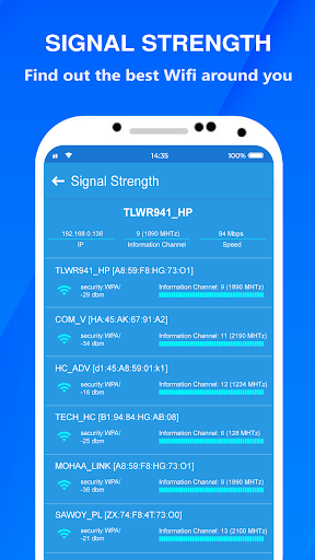 WiFi Signal Strength can Quickly check your WiFi strength to help you find the best location. WiFi Analyzer can View your current WiFi connection signal strength and detect WiFi Signal Strength around you in real time.