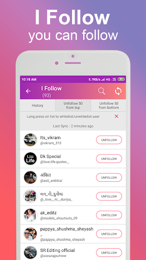 You can even white list (starred) people so that they don’t get unfollowed. It also gives you insight on people who are mutual followers, people whom you are not following and even the recent unfollowers of your instagram profile. With multiple account login you can easily switch between different instagram accounts.