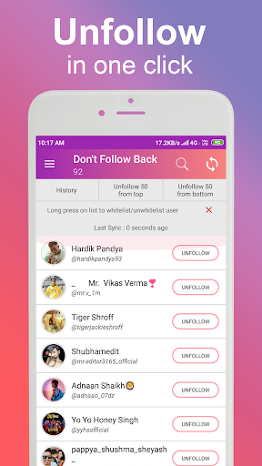 -> Mass unfollow : Unfollow upto 50 people with a single action.