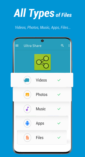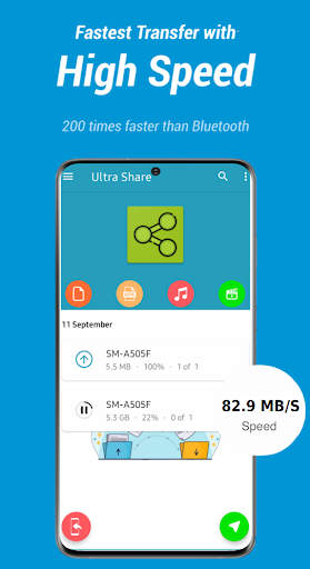 Ultra Share - Share All Apps & File Transfer satisfies all your transfer needs perfectly. Just select videos, photos, music, apps & e-book, pdf files or anything, it will stably transfer them to other Devices at a lightning speed, even without the Internet network.