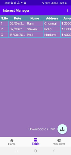In the Table Tab, You can view the details in the tabular manner. Has a option to download the table as a CSV file to make it convenient for you. File on the Go...