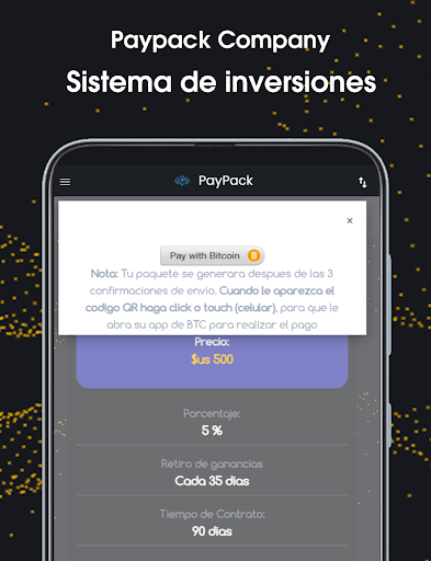 br> paypack é uma empresa de negócios intraday que usa alta tecnologia e estratégias para fazer investimentos e mínimo Bitcoin BTC também tem um sistema de afiliados que lhe dão presentes, obtendo benefícios para todos, também temos um sistema personalizado e uma equipe de Profissionais de alta experiência que operam 24 horas por dia, 5 dias por semana através de 4 mercados diferentes de maior liquidez: Austrália, Londres, Japão, EUA.