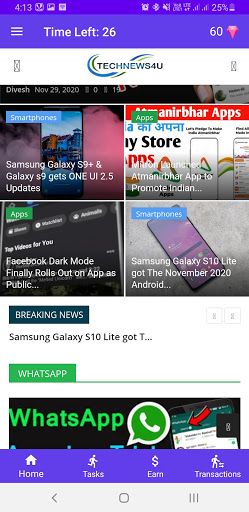 Learn & Earn Is One Of The Best Android Earing App To Earn Real Money By Reading Articles, Spinning The Wheel, Playing Quiz, Solving Captcha, Learning General Knowledge, Referring To Your Friend And Many more.