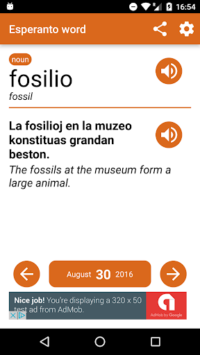 The app displays, for each day of the year, a word and an example sentence of the word, with a human-voiced sound of how to pronunce both the sentence and the word, helping to improve the student's pronunciation.