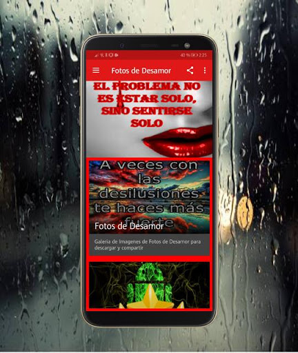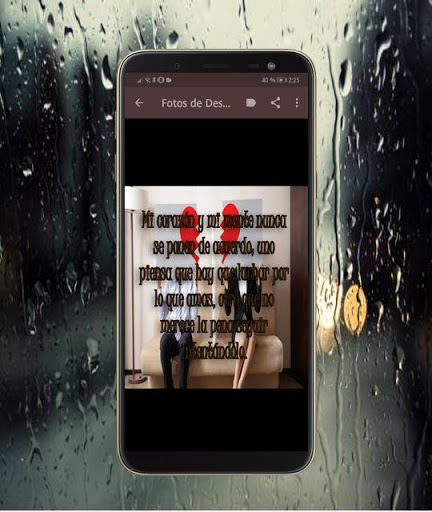 Si la decepcion y la tristeza rondan por tu cabeza debido a un mal de amores, has dado con la mejor aplicación. Hay que ser fuertes, pero hay días en los que necesitamos desahogarnos y expresar nuestra tristeza. El desamor es uno de esos sentimientos que se pueden transmitir a través de mensajes, imagenes y frases, así que... ¿por qué no lo haces?.