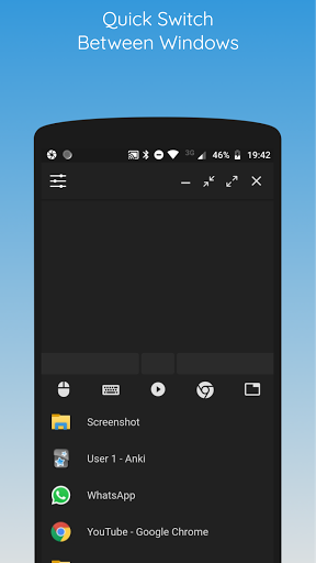 - Possibility to change windows quickly (program icons appear only for windows).