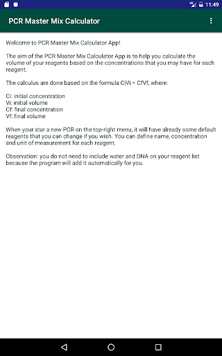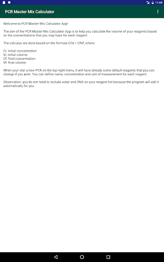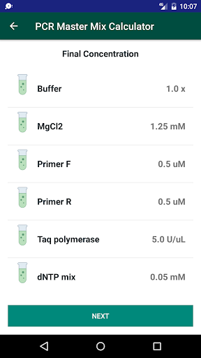 The aim of the PCR Master Mix Calculator App is to help you calculate the volume of your reagents based on the concentrations that you may have for each reagent.