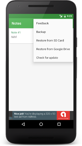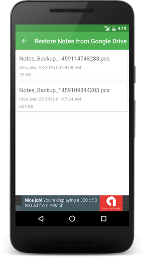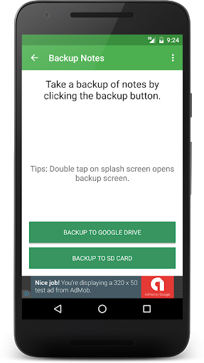 - Double tap the splash screen to open Backup. Create backup of notes (prefer "Backup to Google Drive" option)