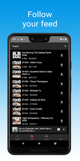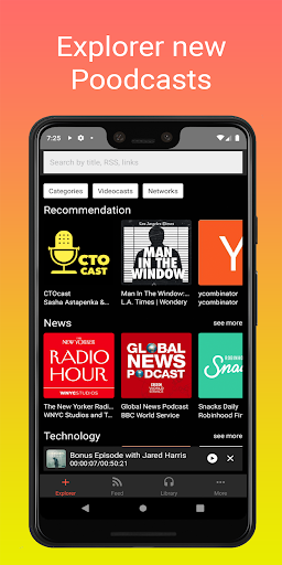 At Podcastly, you will necessarily find podcasts for all occasions. Subscribing to your favorite podcasts, and our recommendation system will sugest you more interesting content. The application can notify you when a new episode is released, and you can stream or download it for free.