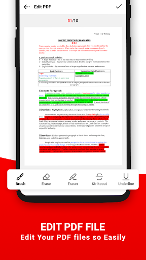 ► PDf Edit - Highlight, underline, and strikeout text,Eraser,brush and it is a great feature to assist you in transmitting to your friends.