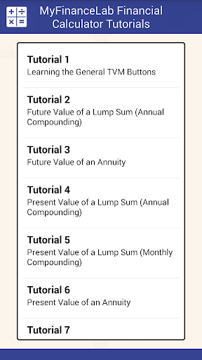 financial calculator along with interactive tutorials. The financial calculator