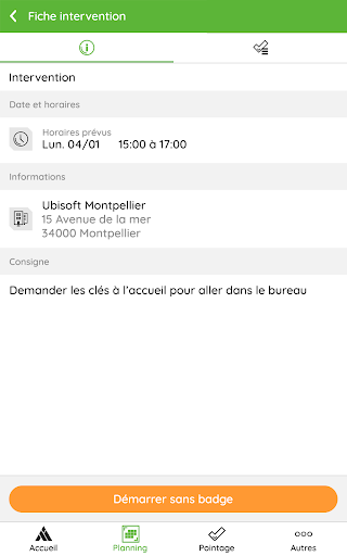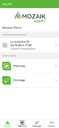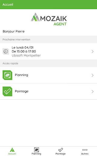 Aplikasi Mobile Agen Mozaikik membolehkan ejen syarikat pembersihan menunjuk pada permulaan dan kemudian pada akhir campur tangan mereka.Maklumat ini dihantar secara real time untuk pemantauan aktiviti optimum.Ciri -ciri lain juga tersedia: perancangan, laporan anomali dengan mengambil gambar, ...