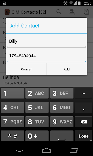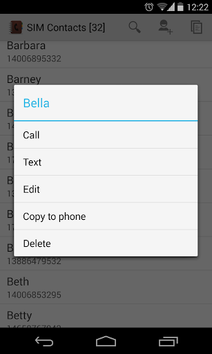 A simple light-weight application, with a clean and sleek UI, to manage your SIM card contacts. Currently the following operations are supported: