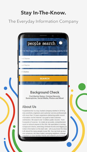People Search provides background checks and people search through our free Android app. Our background check app makes checking up on people easier than ever. People Search is the only way to obtain detailed information on anyone you look up from your phone or tablet. Once you enter a name, address, or phone number our app searches millions of records and delivers you an accurate report within minutes. We search the sex offender registry, court records, property records, and all kinds of other criminal records to uncover the truth. Social media profile details, past addresses, criminal history, and arrest records are just a few of the things contained along with details unavailable anywhere else.