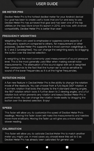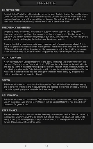 Decibel Meter Pro is the hottest, most feature packed decibel meter on Google Play! With killer graphics optimized for your device! Decibel Meter Pro has been in the Top Utilities on the App Store since it's release! Download your copy today and find out why!
