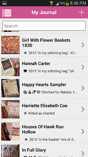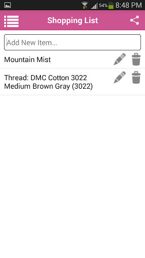 X-Stitch is an easy-to-use app designed by cross stitchers for cross stitchers. X-Stitch includes Journal, Inventory and Shopping List modules. The Journal lets you categorize and track all your projects, add photos, document the start and finish dates, and keep detailed project notes. The Inventory module is a fast and fun way to manage your cross-stitch stash. Charts, threads and linen can be added with just a few clicks. Note: Chart details (names of chart, notes, etc.) are manually entered. X-Stitch comes pre-loaded with hundreds of chart designers and approximately 6,000 thread selections that you can quickly and easily add to your inventory. Use the Shopping List to prepare for your next trip to the needlework shop. And because X-Stitch uses Cloud technology, you can securely access your data from all your IOS and Android devices. No manual synching or duplicate typing! Like to customize? X-Stitch lets you pick your favorite image for the Home Screen. Want to share? X-Stitch supports sharing via Facebook, Twitter, E-Mail, Text, and more!
