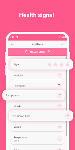 With our app, you can enter daily notes and track symptoms, moods, intercourse, period flow, results of an ovulation test, and a pregnancy test.