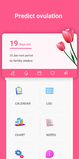 • Represents your fertile and ovulation days with a chance of pregnancy in the calendar.