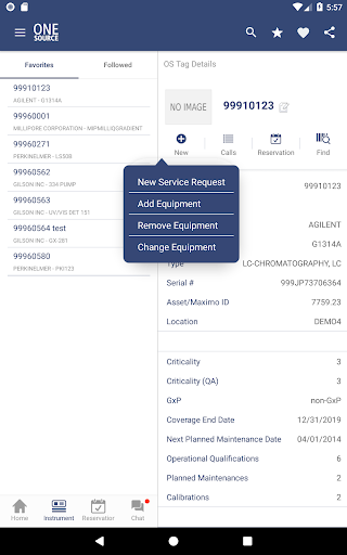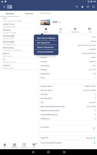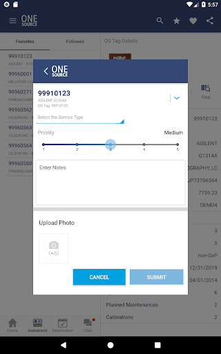 Use OneSource Mobile’s “Recent” and “Favorites” options to keep track of your key assets as well as recent activity. Through the “Favorites” option you can build your own list of key instruments to quickly log new service requests, to check on upcoming service events and for reviewing the service history. We've even included a naming option for easy instrument identification and a “Follow” feature so you can stay up-to-date on all your instruments activities.
