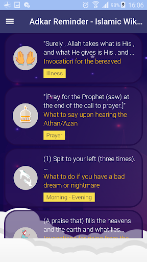 Adkar Reminder - Islamic Wikipedia is unique Islamic application with new and very useful features: