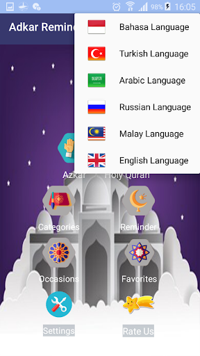 The app is also available in multiple languages like Bahasa for Indonesia, Malay for Malaysia, Bengali for Indian and Bangladesh along with Turkish, Russian and Arabic. We also have plan to introduce more languages soon in sha Allah!