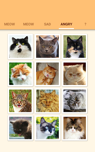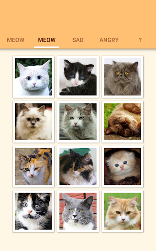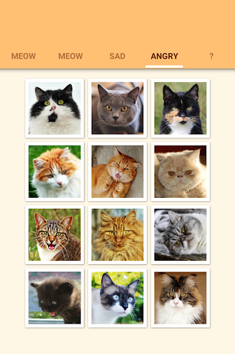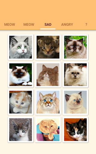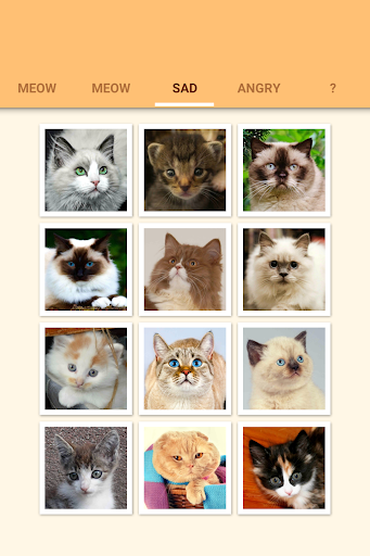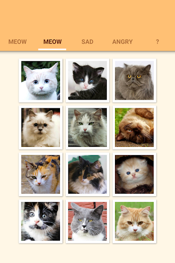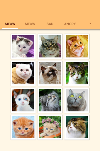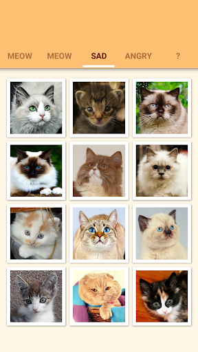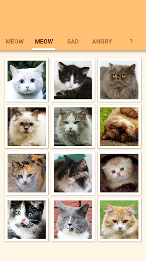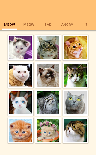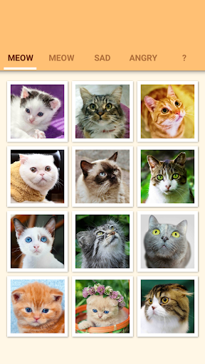 Are you a cats lover and love hearing the funny meow voices that cats and kittens make? Or you don't have pets and you miss the sounds of cats and kittens? Then download this app and listen to variety of selection of sound of felines that reminds you how cute they are. Since this is an app, you can listen to the sounds on the go, from the phone on your pocket (also playable on tablets). Just tap a tile and listen to variety of cat meows.