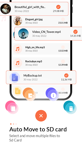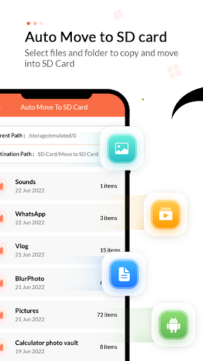 Want to move your device's internal data to SD Card..? This App provides the best way to instantly move your all mobile data to SD Card with Auto Move To SD Card-Move File App. This Auto Move To SD Card app allows users to instantly move any files, videos, photos, documents, or music into SD Card with simple gesture touch. Auto Mover to AD Card app provides a simple way to select and move all files in a single click into Smart SD Card. Now no need to take tension about your mobile data moving into SD Card, this File Mover to SD Card app has the best tools with which any user can transfer mobile data into SD Card.