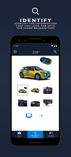 - "Scan" your vehicle with the smartphone's camera lens, click on a recognised component to display information on it
