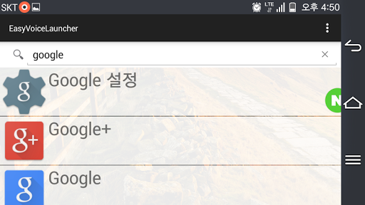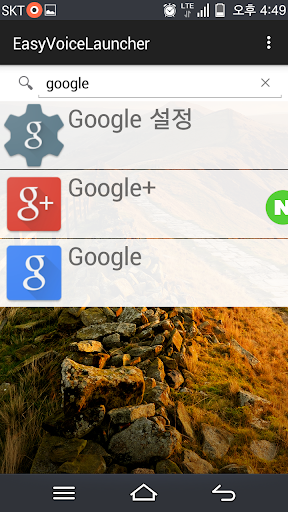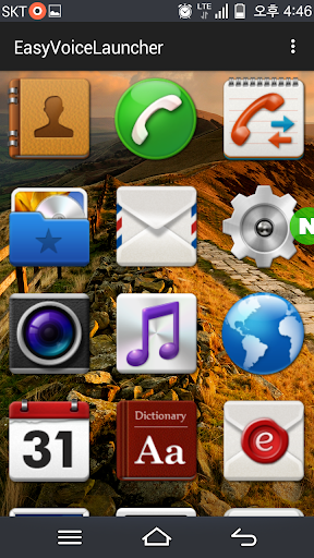 Launcher with bigger icon, text and voice app search Features - Shows bigger app icons - By swiping left,search-app screen is appeared - By tapping mic button on search-app screen, voice-search is enabled