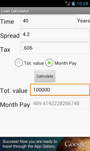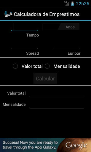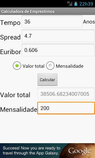 This is a very simple app that calculates the monthly pay for an loan amount or calculate the value to be requested for the monthly pay you want to pay. THIS IS ONLY AN ESTIMATE. GO TO YOUR BANK FOR A REAL SIMULATION.