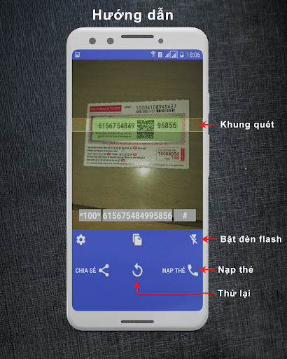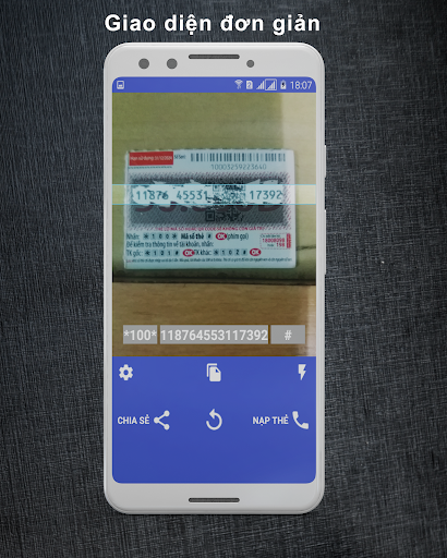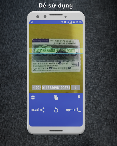 Ứng dụng nạp thẻ bằng camera, giúp nạp thẻ một cách nhanh chóng mà không cần mất thời gian nhập cú pháp *100*mã thẻ#.