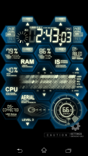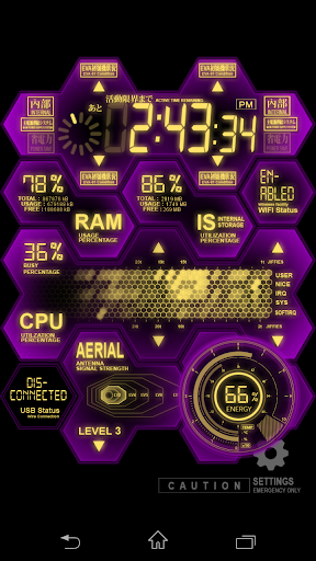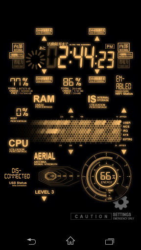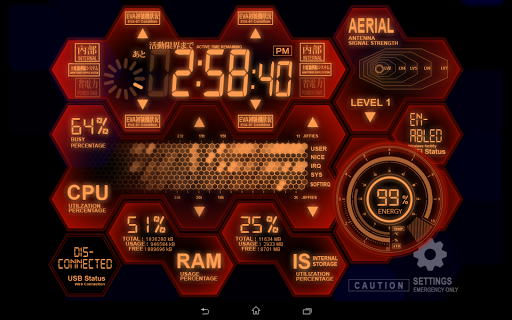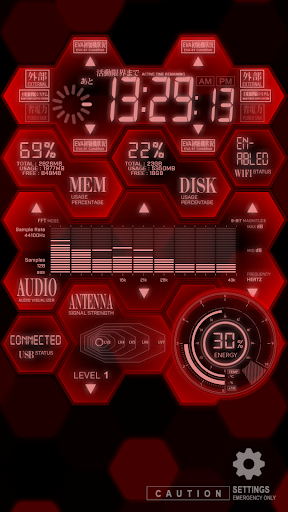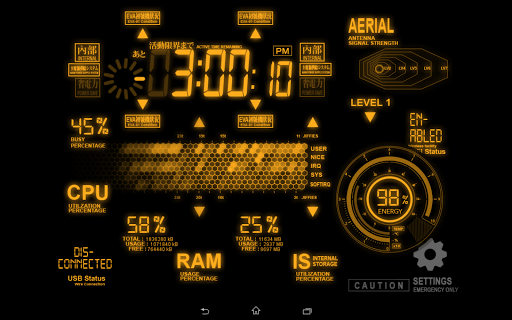An Evangelion style clock and system monitor. The EVA System Monitor not only runs as a standalone app , but also runs as a Live Wallpaper. It displays system resource usages of your mobile phone including :