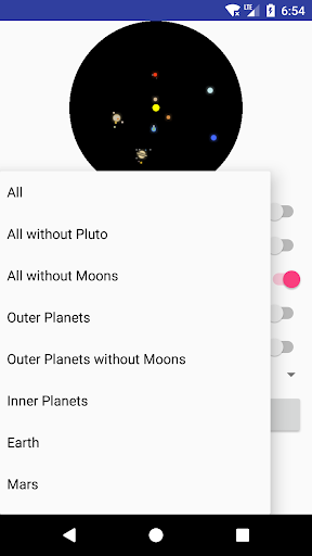 The planets are approximated by circular orbits, the distances to the sun of the outer planets are shortened so that both inner and outer planets can be represented.
