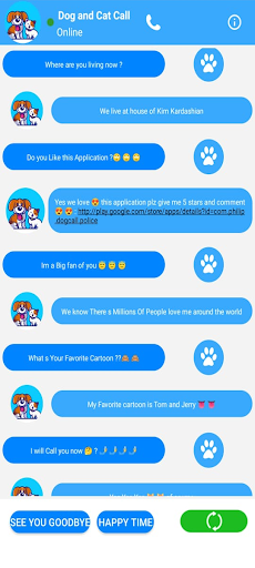 Fake Call Dog & Cat app is purely for entertainment purposes and does not provide any real calling functionality.