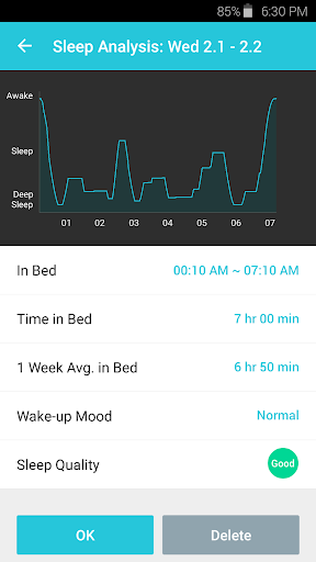 fit2day analyzes your sleep cycle to help you wake up at a lighter sleep stage and feel better.