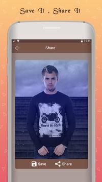 With this amazing man Men Tshirt Designes app, you can select your photo from mobile gallery and put your face into several nice man T-Shirts photo suit and check yourself. This stylish man T-Shirt camera editor app create the stylist photo with man T-Shirt that will make your photo attractive and fashionable. You can make t-shirt photo montage and capture your photo with men t-shirt. Make fashionable and stylish Man T-Shirt photo suit & look like Hero.