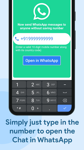 WhatsInstant app allows you to open chat with anyone on WhatsApp or WhatsApp Business without save his/her number on your phone, as we all know that we can't open chat with someone without save the number on your contact but with WhatsInstant you can do it with easiest way just by writing the number of your friend or anyone you want and click open chat and a conversation with the number you wrote will appear and you can send message.