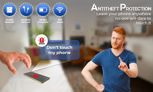 The phone touch alarm will alert you whenever someone touches your phone without your permission and the phone theft security will protect you from mobile thefts.