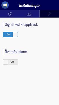 • När appen är igång stängs inte skärmen av så du hela tiden är redo att trycka på larmknappen.
