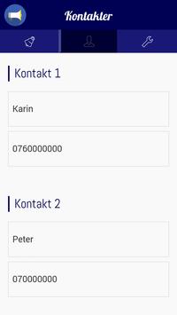• Spara upp till tre kontakter som du vill skicka alarm till.