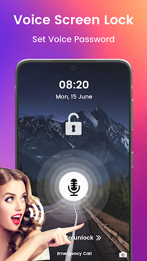 Unlock your phone screen with voice. Beautiful and customizable Voice lock screen for any android device. Set a voice password and use it to unlock your device.